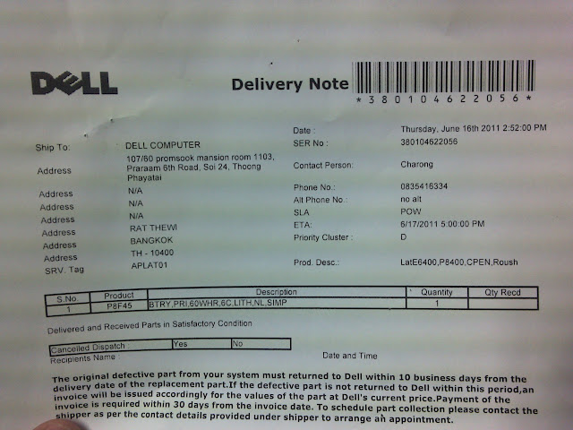 บิลส่งของจากเดลล์ครับ ไม่มีประกันในไทยทำไม่ได้นะครับ ^,^